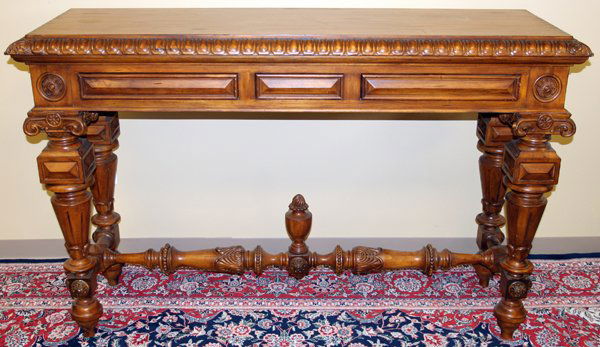 ANTIQUE FRENCH RENAISSANCE STYLE CARVED OAK LIBRARY/CENTER TABLEMar 21, 2026Chippendale Style Mahogany Three Pedestal Dining Table, 2 Leaves 20th Cent., H 30" W 48" L 113.5"Mar 19, 2026Tuscan Style Solid Wood Triple Pedestal Pastry Table 130-In Oval Top3 days LeftItalian Olivewood Console Table with Marble Top and Brass Ormolu TrimMar 20, 2026FRENCH LOUIS XVI STYLE MARBLE-TOP LACQUERED MAHOGANY SIDEBOARDMar 29, 2026Sherrill Mahogany Console Sideboard with Lion Head Carvings3 days LeftFrench Louis XVI Style Carved Mahogany Bureau Plat, 20th c., H.- 29 in., W.- 59 in., D.- 31 1/2 in.Mar 27, 2026FRENCH EMPIRE MARBLE-TOP FLAME MAHOGANY SIDEBOARDMar 29, 2026Butler Hand-Carved Peyton Console Table Oak Brown2 days LeftAmerican Empire Flame Mahogany Sofa Table with Carved Acanthus and Paw Feet Circa 1840Mar 22, 2026An antique Empire flame mahogany, partners deskMar 22, 2026Maitland Smith Georgian Mahogany Console Table with Marble TopMar 22, 2026HENREDON NEOCLASSICAL STYLE MAHOGANY CONSOLE TABLEMar 25, 2026Buckingham Collection Extendable Crotch Mahogany Veneer Dining Table Seats 10Mar 23, 2026Queen Anne Style Mahogany SideboardApr 07, 2026Rare Large Chinese Jichimu Wood Altar Table4 days Left