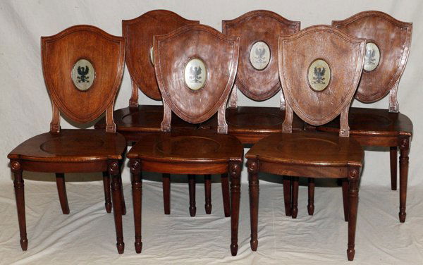 CARVED MAHOGANY, SHIELD BACK, SIDE CHAIRS, 6PC
