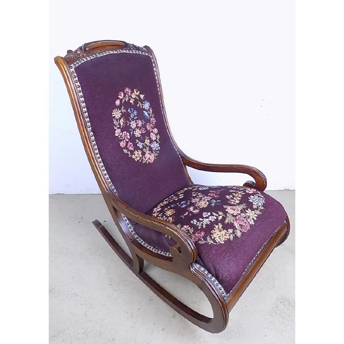 CARVED NEEDLEPOINT ROCKING CHAIR