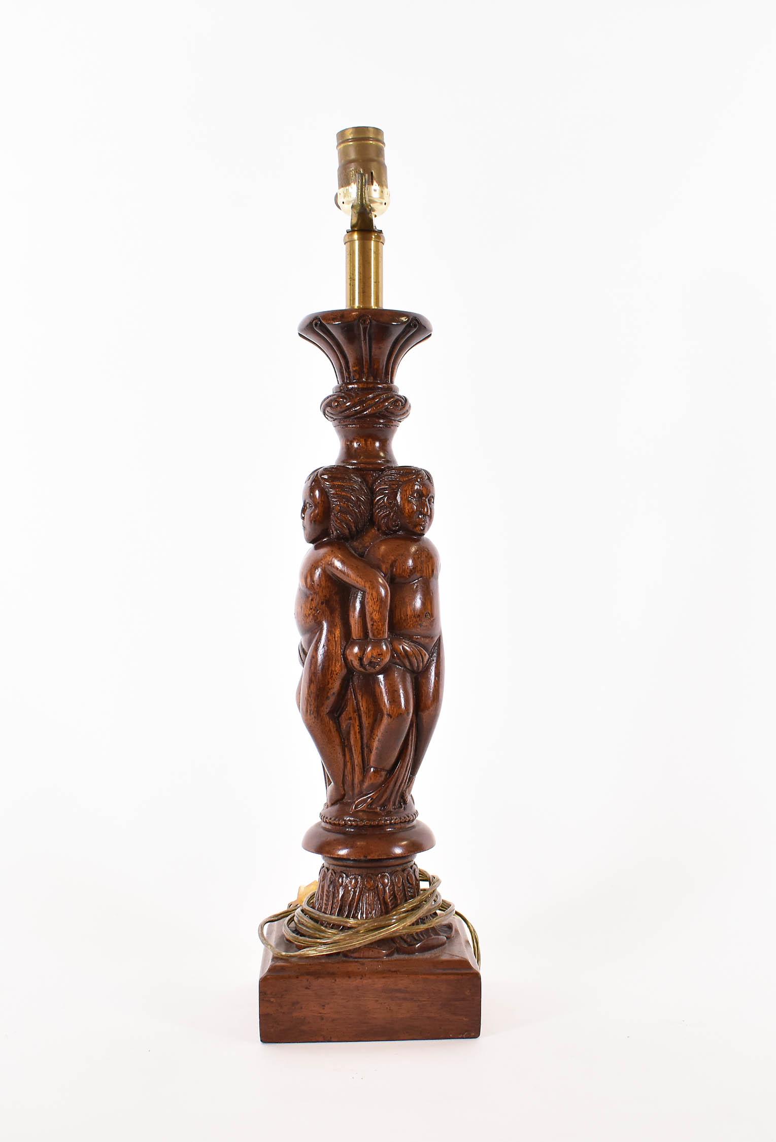 CARVED OAK TABLE LAMP