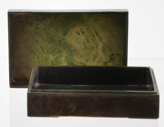A HETIAN JADE RECTANGULAR COVERED BOX WITH BOGUWAN (ANTIQUE PATTERN)15 hrs LeftTwo Chinese carved and inscribed jade pendant plaques, 20th century,Chinese Carved White Jade Snuff Bottle Lion Mask Handles circa 1800Apr 26, 2026Chinese Carved Nephrite Jade Circular Box with LidA finely carved circular box crafted from a17 hrs LeftTimurid Islamic Carved Jade Plaque with Arabic InscriptionApr 21, 2026Chinese Carved Jade Openwork Plaque with Dragon Motif Rectangular carved jade plaque featuring an17 hrs LeftA Carved Organic Material Lidded Box, China, 19th CenturyApr 19, 2026Embossed lacquerware box containing a jade bracelet.6 days LeftChinese Carved Jade Seal with Immortal FigureAn elegant jade seal, featuring a finely carved17 hrs LeftBerlioz-Leroy Gold, Platinum, Carved Jade, Coral and Diamond CaseApr 29, 2026Two Chinese Export Jade Carved TogglesApr 18, 20261960s-70s Rosewood (Old Acid Branch) Relief Kui Dragon Rectangular Covered Box14 hrs LeftCARVED JADE & 18K YELLOW GOLD PENDANTApr 24, 2026CHINESE CARVED JADE AND HARDSTONEApr 29, 2026A Four-Piece of Japanese Red Cinnabar Tsuishu Lacquer Writing Set5 days Left800 Silver Mounted Carved Bone Box4 days Left