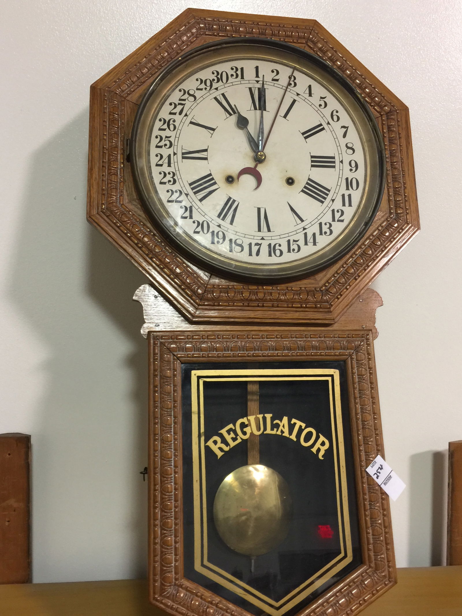 Carved Regulator Calendar Clock