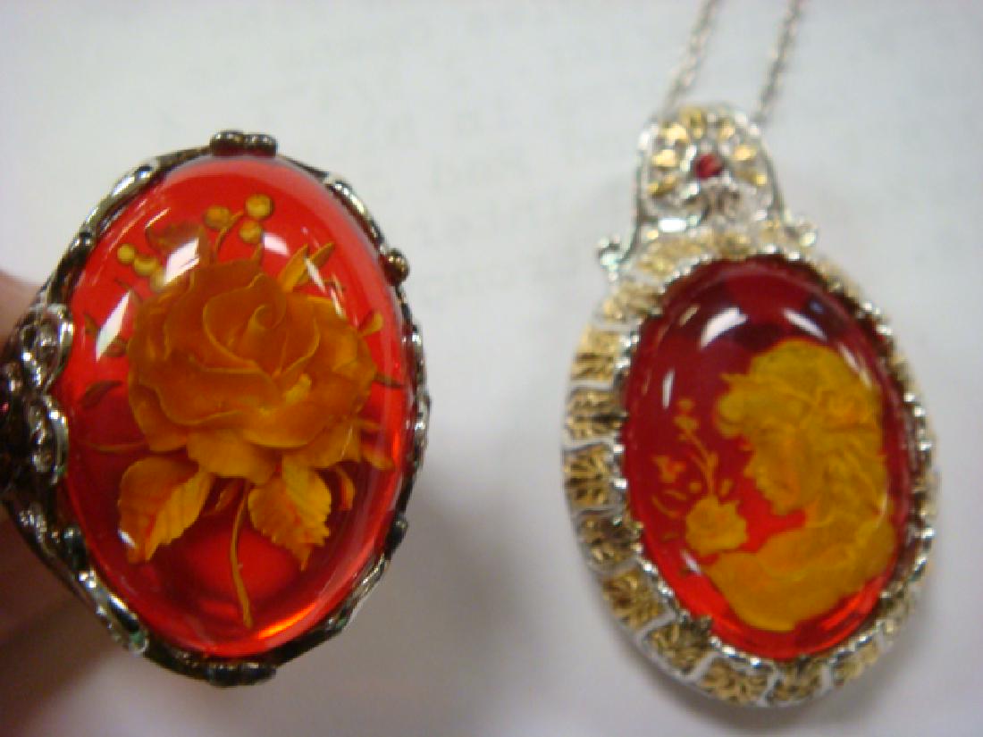 Carved Reverse Intaglio Ring and Pendant:
