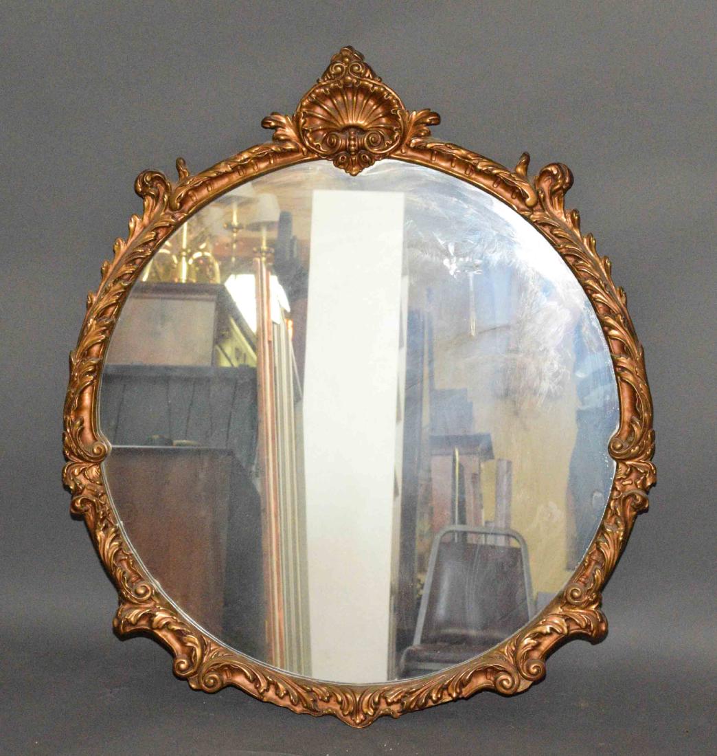 SoldAntique Hand Carved Gilt Round MirrorAntique Hand Carved Gilt Round Mirror. Missing PiecesMeasures 36 inches x 36 inches diameter.See Sold Price