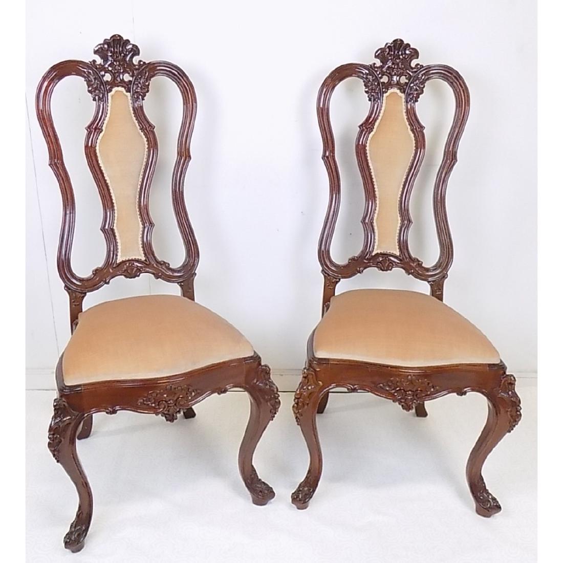 SoldPAIR CARVED SIDE CHAIRS ATTRIBUTED BELTERRosewood. Carved wood. 39" h x 18 1/2" w x 23 1/2" d. Seat height 16 3/4".See Sold Price