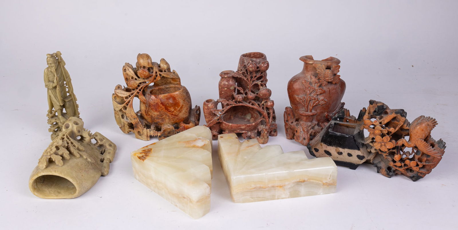 Lot of 19th/20th century Chinese carved stands. Some with losses or breaks. Provenance: From aMar 01, 2026Mostly Faux Carvings, Some AuthenticFeb 25, 2026Group of Studio PotteryFeb 25, 2026Carved Soapstone Figures, MedallionsFeb 22, 2026Carved Stone (5) Figures / PendantsFeb 25, 2026Collectibles (8) Pieces [Jours Clock]Feb 25, 2026Native American (3) Stone CarvingsFeb 25, 2026Antique (5) Carvings [Buddha]Feb 25, 2026Chinese Carved Stone Sculptures, 4Apr 14, 2026Group of Five Small Carved Figurines and ObjectsFeb 26, 2026Two Ceramic Vases and Four Ceramic SculpturesFeb 24, 2026A Collection of Hand-Carved Onyx and Soapstone Animal Figurines2 days LeftA Group of Asian Ceramics2 days LeftMiniature Animal carvings from Variety of Stone MaterialsMar 02, 2026Group Chinese agate and soapstone carvings6 days LeftA Set of Buddha's Hand Ornament & Seals, Tianhuang Shoushan Stone, Collection of Wu HufanFeb 24, 2026
