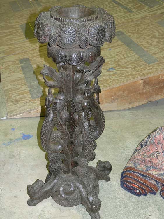 carved stand w/birds (missing head