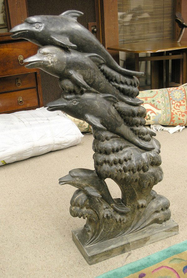 Carved stone dolphins