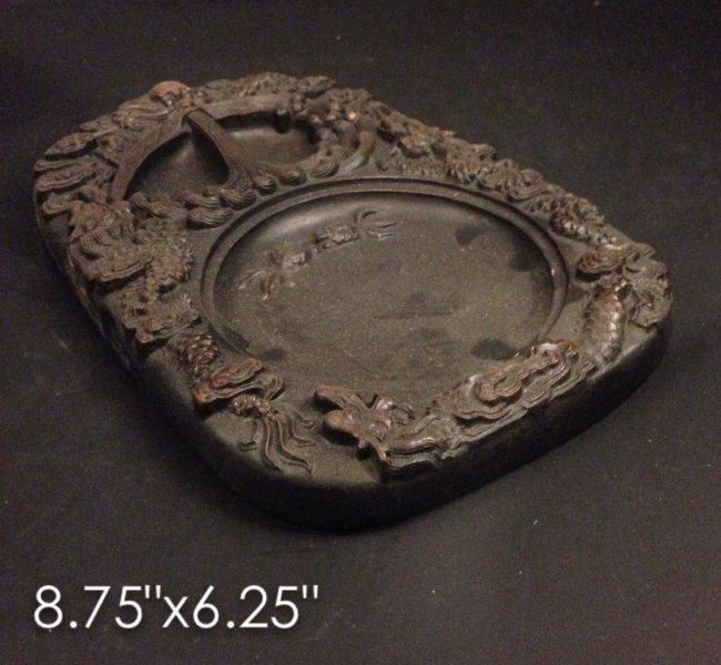 Carved stone inkwell with dragon