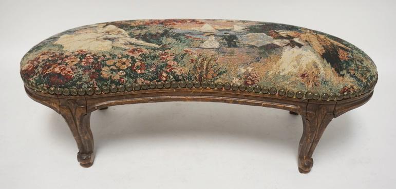 CARVED UPHOLSTERED KIDNEY SHAPED STOOL
