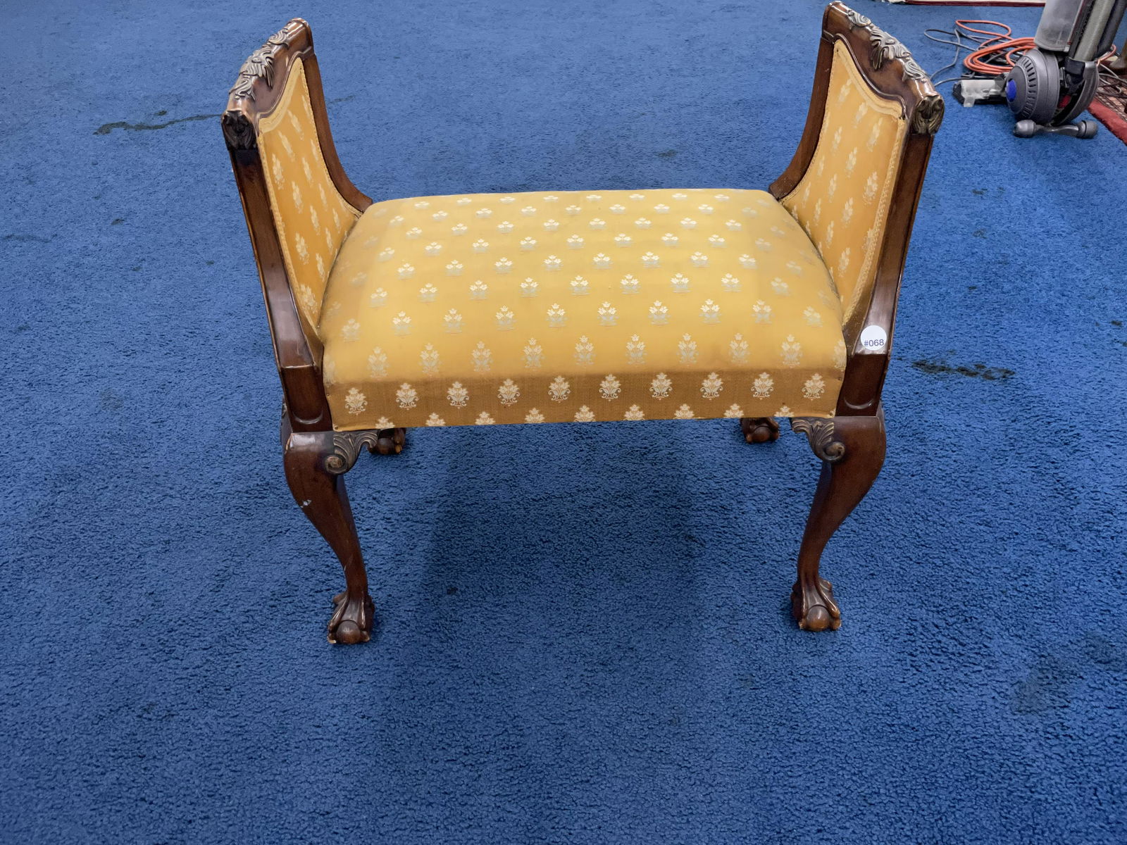 Chippendale Style Mahogany Armchair with Carved Details and Damask UpholsteryBidhaus4.2(840)$1004 days Left