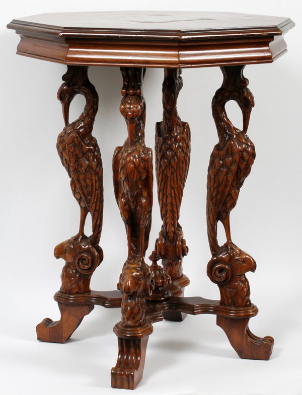CARVED WALNUT FIGURAL TABLE EARLY 20TH C.