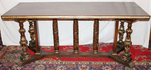 CARVED WALNUT LIBRARY TABLE, C. 1920'S, H 32"