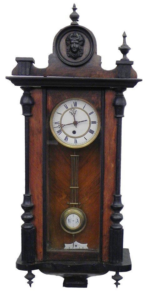 Carved Walnut Regulator Wall Clock, 19th c., the a