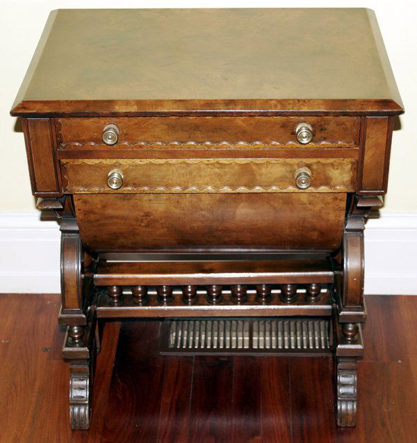 CARVED WALNUT SEWING TABLE, C. 1850, H 27",