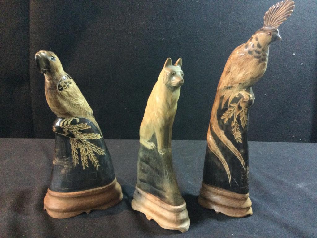 A Lot of Three Bird Decorative Figurines2 days Left5PC LOT OF AFRICAN CARVINGS INCL. FAKEYEMar 07, 2026CHINESE CARVED WOOD STATUES- LOT OF (2)Feb 24, 2026Rick Cain & Ralph Ireland Animal Motif CarvingsFeb 26, 2026Vintage Wood Carved Elephants with Bone DetailingMar 04, 2026A Pair Ox Horn StatueHandcarved Decor pieces, Seagull on base, Pelican, Root clump, Office Gang 7h x 13w x 10d inches6 pcs Vintage Carved Wood Figure Souvenir Collection. Very Good Condition. See pics.(2) Vintage Wood Carved AnimalsFeb 23, 20263pc African carved natural material figures. Possibly Congo9 hrs LeftPair of Well Carved Buffalo Horns3 days LeftGroup (4) Figa hands carvingsFeb 19, 2026A Collection of Hand-Carved Onyx and Soapstone Animal Figurines4 days LeftCarved Wood Deer19 hrs LeftCarved Wood Deer19 hrs LeftGroup of Hand Carved Oceanic & Tiki SculpturesFeb 22, 2026