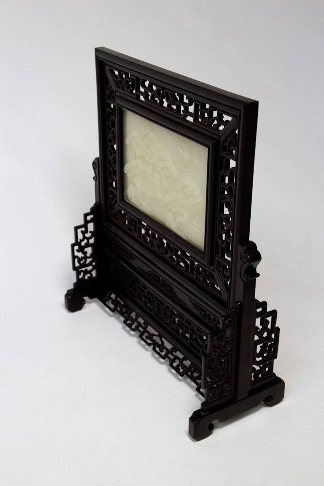 Carved Wood and Jade Screen