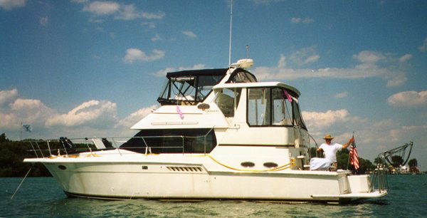 SoldMotorized Cabin Cruiser Boat Model12 1/2 " high, 40 1/2" wide, 8 1/2" deep. Estate condition with age and use wear, soiling.See Sold Price