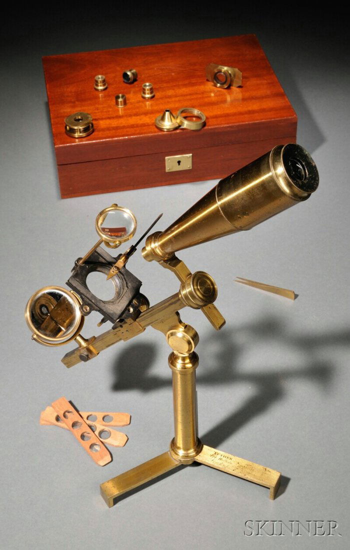 CASED M. PILLISCHER BRASS MONOCULAR MICROSCOPE London, Mid-19th Century Microscope height approx.Mar 12, 2026BRASS READING TELESCOPE WITH TRIPOD BASE America, Late 19th Century Height 11.5". Tripod baseMar 12, 2026CASED BRASS ROSS-TYPE STEREOSCOPIC BINOCULAR MICROSCOPE England, Late 19th Century Microscope heightMar 12, 2026LEATHER-WRAPPED REFLECTING TELESCOPE ON A FOLDING BRASS TRIPOD Early 19th Century Collapsed heightMar 12, 2026Baroness Jeanne-Marie Vintage Brass Telescope6 days LeftBRASS TELESCOPE Late 19th Century Height on stand 15.5". Length 26".3 days LeftCASED BAUSCH & LOMB BRASS MICROSCOPE New York, Late 19th Century Cased height 14". Width 8.5". DepthMar 12, 2026H Crouch Binocular Microscope w Petrographic Prisms2 days LeftGOLD FOIL ELECTROSCOPE Late 19th/Early 20th Century Max height approx. 12". Base diameter 4".Mar 12, 2026Gregory-Style Reflecting Telescope, c. 1780Mar 14, 2026Antique Aronsberg & Co. English Brass TelescopeMar 11, 2026French Compound Brass Microscope by Nachet, c. 1875Mar 14, 2026CASED BRASS MONOCULAR MICROSCOPE Mid-19th Century Case height 4.5". Width 11". Depth 5.5".Mar 12, 2026Antique W. & L. E. Gurley Brass Surveyor's Transit c18901 day LeftCASED SMITH & BECK MICROSCOPE London, Mid-19th Century Case height 6.25". Width 17". Depth 9".Mar 12, 2026Brass Microscope by Seibert, c. 1880Mar 14, 2026