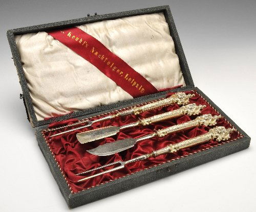 Lot of silver cutlery113 Lots AwayA CASED SET OF CHINESE SILVER BLADED MOTHER OF PEARL WAIKEE CUTLERY. Each fork 360 grams overall, knFeb 12, 2026Vintage Ornate Victorian Sterling Silver Gold Washed Fork, Spoons and KnivesVINTAGE FRENCH WWII SPOON ABD FORK SET W SS RUNESFeb 14, 2026SILVER. Cased English Silver Christening Set.5 days LeftSheffield D Flookton Tompking and Co Etched Fish Knife Fork Serving SetA Silver Travel Cutlery Set in a Rrichly Decorated Case, Dated 1826. Silver, 42g.2 days LeftA Collection of Six Patinated Metal Souvenir Spoons with Gilt Bowls in Fitted CaseMar 07, 2026Allen & Darwin Silverplate Cutlery Service Set2 days LeftWWII TYPE EVA BRAUN MONOGRAMMED SILVERPLATE CUTLERYFeb 14, 2026A Collection of Old Company Plate Silver-Plated Flatware in Presentation CaseFeb 15, 2026A CONTINENTAL SILVER FRUIT SET FOR SIX6 hrs Left"Royal Danish" Sterling Flatware Set 120oz TW3 days LeftADOLF HITLER MONOGRAMMED SILVER FISH CUTLERY SETFeb 14, 2026Pair of Gorham Buttercup Sterling Carving UtensilsFeb 19, 2026Collection of Six German Silver Plated TeaspoonsFeb 19, 2026