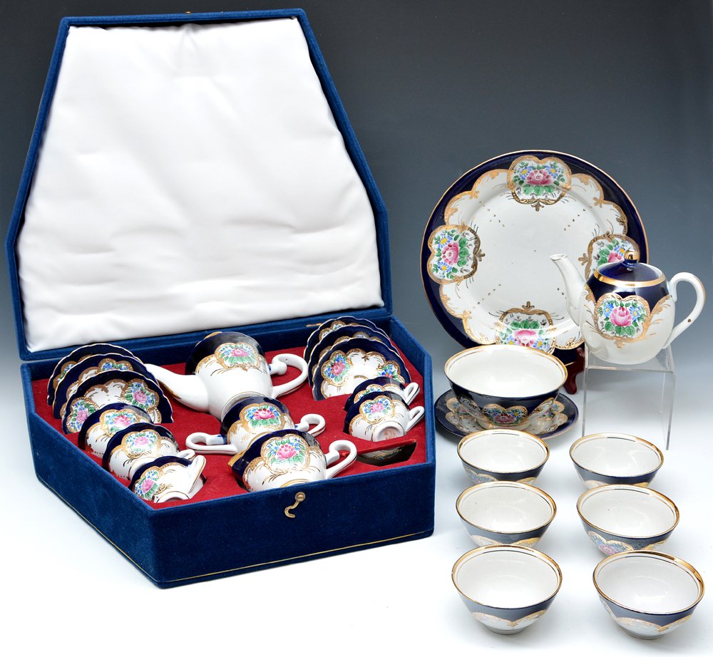 Estate Lot Cobalt Cobalt Urn Vase, 4 Porcelain de Paris Coasters & Crown Dorsett Teapot EnglandMar 15, 2026Lot 19th C. Most. English Porcelain Cups & SaucersFeb 28, 2026Lot Vintage Cup & Saucers &Tea Set - StaffordshireFeb 28, 2026(97) LIMOGES LANTERNIER GILT-ENCRUSTED PORCELAIN DINNER SERVICE1 day LeftCoalport, England. Egoist breakfast / tea service in porcelain decorated with flowers. 1960s / 70s.17-Piece Royal Doulton Coffee Pot, Cups, & Saucers - The Chelsea Rose Pattern2 days LeftAntique English Porcelain Tea Cups & SaucersRoyal Vienna Coffee and Tea ServiceFeb 26, 2026VTG FRENCH LIMOGES PORCELAIN TEA CUPS AND SAUCERS2 days Left10 antique Rörstrand porcelain cream cups with hand-painted flowers and gold decoration.KPM, Berlin. Royal Ivory tea service in cream-colored porcelain with gold decoration for six people.(10 PC) ALEXANDER II PERIOD RUSSIAN IMPERIAL PORCELAIN TEA SERVICE2 days LeftCROWN STAFFORDSHIRE PORCELAIN TEA SET RETAILED BY ALFRED B. PEARCE & CO., C. 1906–19151 day LeftParis porcelain tea set7 hrs LeftLARGE GERMAN ECHT WEIMAR KOBALT PORCELAIN SERVICEFeb 28, 2026Seven Box Lots of Partial Porcelain Teacups and Saucer Sets2 days Left