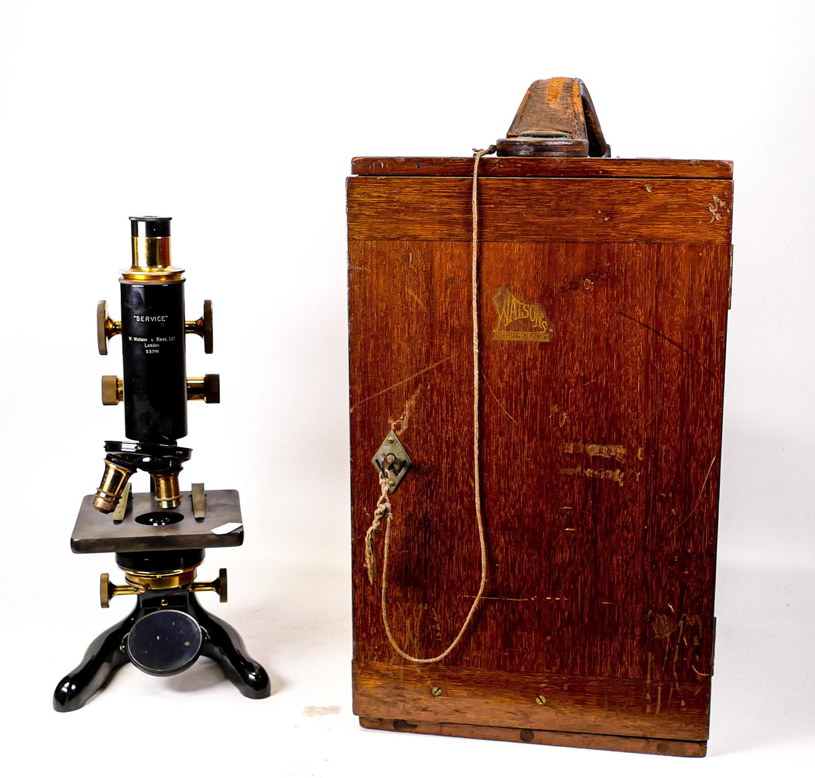 Cased Watson Doctors type microscope, height 33cm
