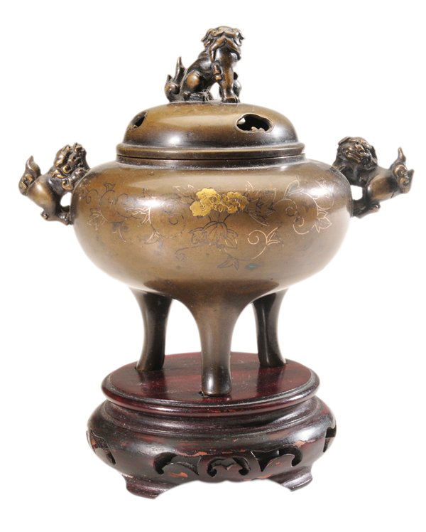A Chinese gilted Bronze Tripod Censer with Lion-Dog Finial with sign "DA MING XUAN DE YAN ZHI"COAUCTION 4.3(12)$300389 Lots Away
