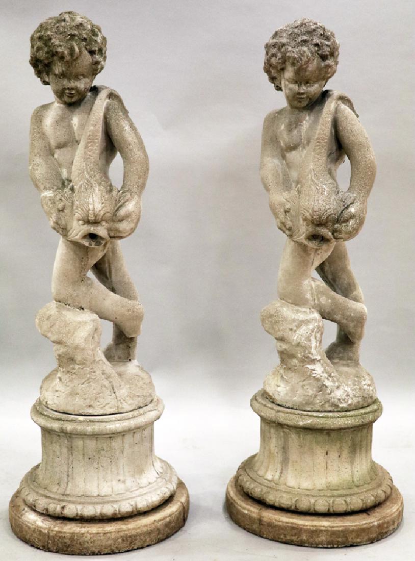 CAST CONCRETE GARDEN SCULPTURES, PAIR