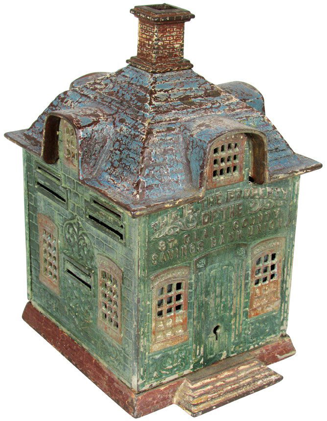 State Bank - Straight Letters - Rare in Silver Paint3 days LeftAntique Early Cast Iron Bank, c. 1950Feb 24, 2026Antique Painted Wood Doll House5 days LeftQuadrafoil Cast Iron Bank3 days LeftKlotz Mfg. Co. American Vault Cast Iron Still BankMar 01, 2026New Bank- Cast Iron3 days LeftEASTERN SPECIALTY MFG. CO. (LANCASTER, PENNSYLVANIA) PAINTED CAST IRON DOORSTOP.Feb 19, 2026Domed Mosque Cast Iron Bank with Combination Door3 days LeftHome Bank - Cast iron3 days LeftTwo Miniature Cast Iron State Banks3 days LeftJamestown North Carolina Pottery Bird HouseFeb 21, 2026A mid 19th century English painted novelty cottage money boxJ&E Stevens Cast Iron Burglar Proof House Safe Still BankMar 01, 2026(2) Early Cast Iron Still BanksMar 01, 2026Property of Columbian Economic S&L Assn. Cast Iron Still Safe BankMar 01, 2026GOTTSCHALK RED ROOF DOLL HOUSE.Feb 19, 2026