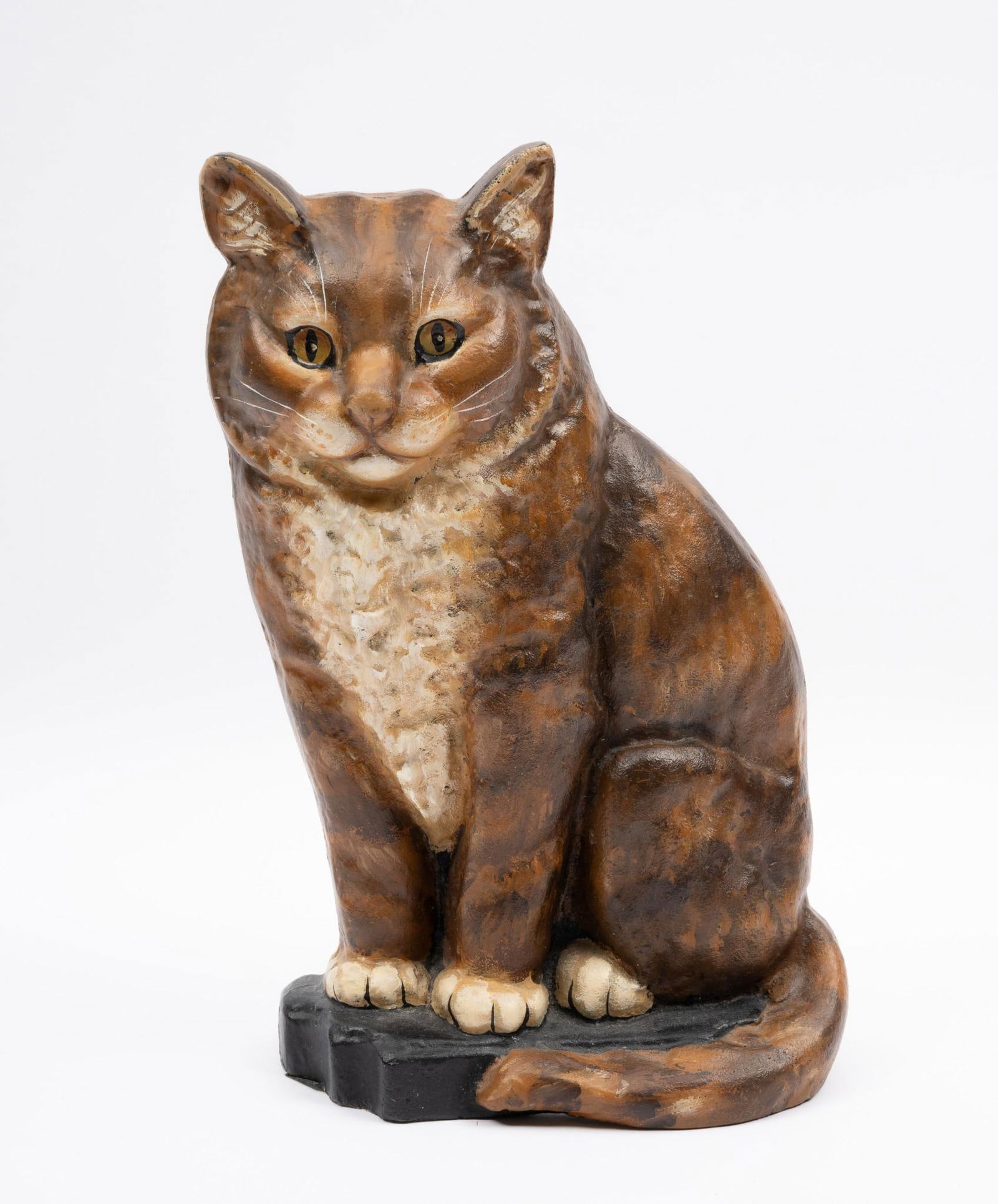 SoldCast Iron Cat DoorstopModernist solid cast iron doorstop depicting cat with patina height 17.25 in. x width 7.75 in. x depth 4.5 in. Provenance: Property from the collection of a San Antonio, Texas estateSee Sold Price