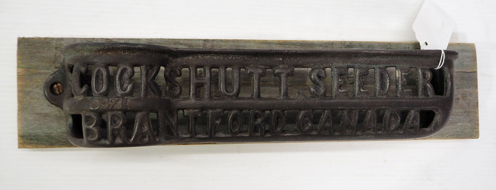 Cast iron cut-out Cockshutt seeder tool box