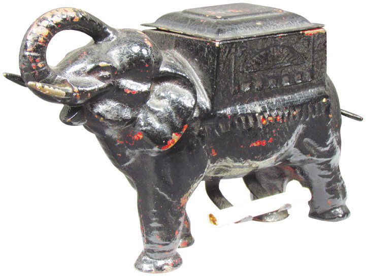 Cast Iron Figural Cigarette Dispenser, Elephant