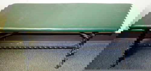 SoldCast iron fireside bench with green upholsteryCast iron fireside bench with green upholstery, 16 in. T, 24 in. W.See Sold Price