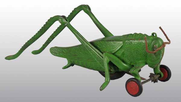 Cast Iron Grasshopper Pull Toy on Wheels.