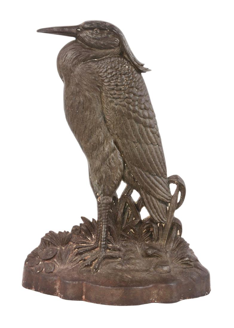 SoldCast Iron Heron DoorstopCast iron Heron door stop / doorstop, attributed to the Albany Fdry. Co, 8" H.See Sold Price