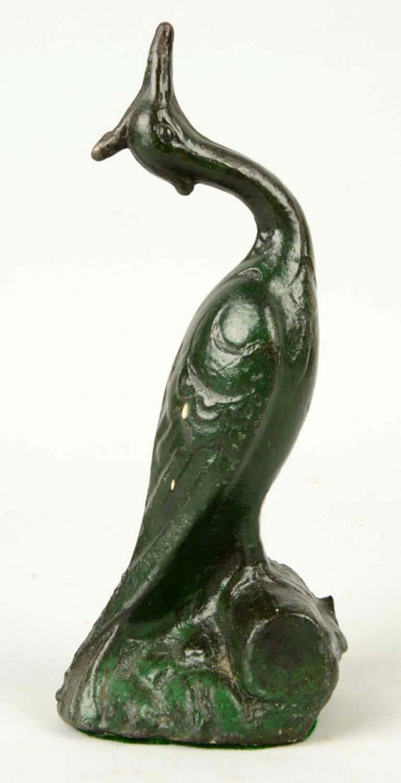 SoldLot of 5: Assorted Cast Iron Doorstops.Includes Peacock, Squirrel with a Nut, Pheasant, Penguin and a Stork. Condition: (Good - Very Good). Dimensions: Largest: 12" x 8 - 3/4".See Sold Price