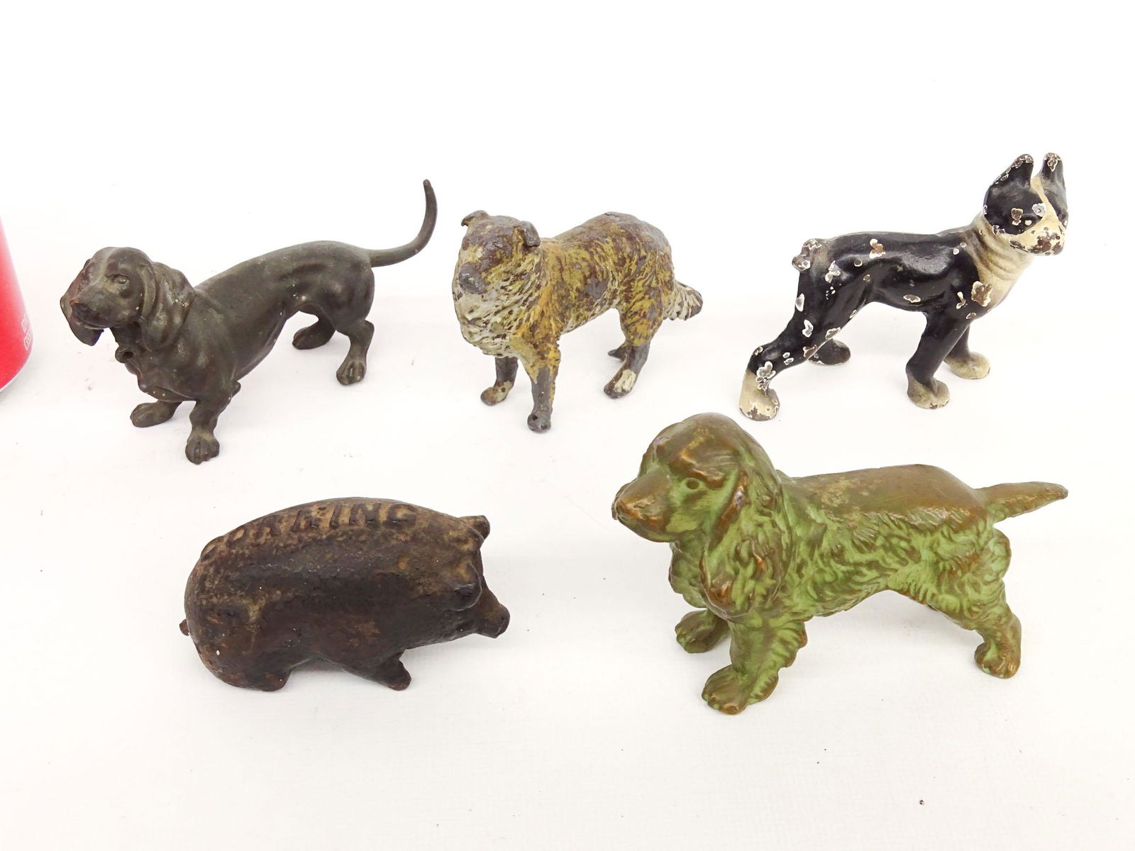 SoldSix Various Cast Metal Animal Figure Still Banks.Six Various Antique/Vintage Cast Metal Animal Figure Still Banks. Tallest measures 6"h. Condition: Good with wear and some repaint.See Sold Price