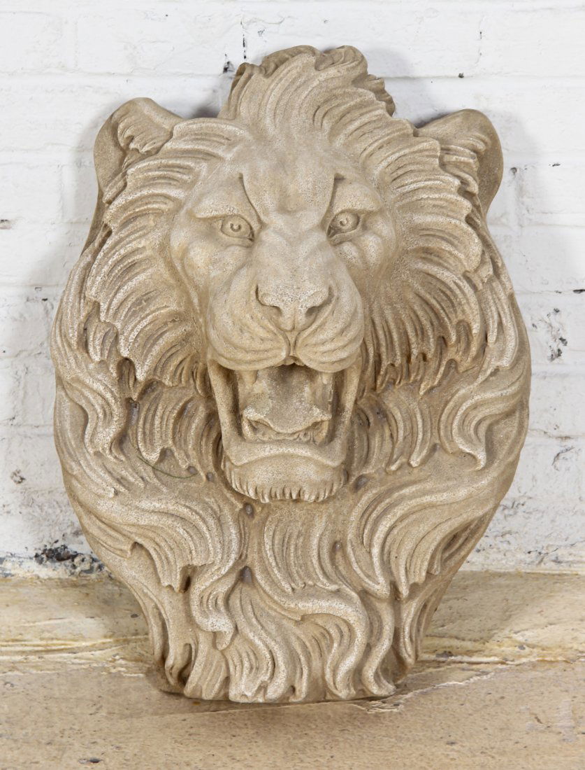 Cast stone composite lion's head cartouche