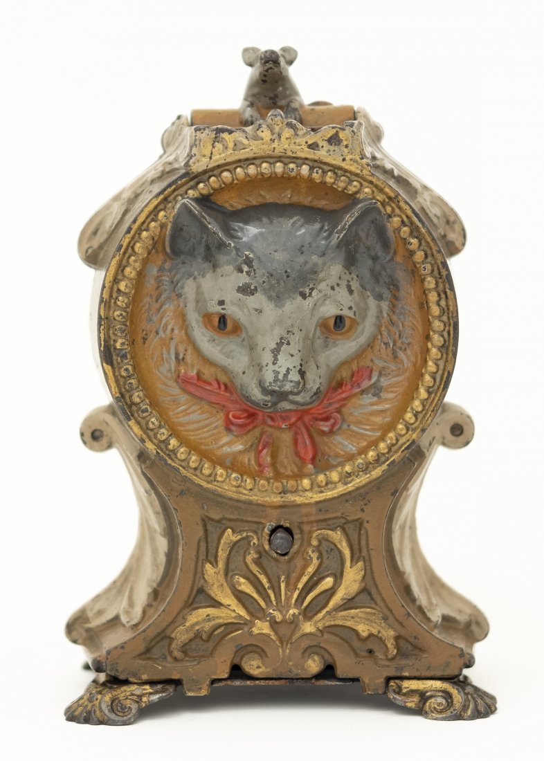 A silver fox head stirrup cup Camelot Silverware Ltd, Sheffield 1996Darche MFG Co, Flash Light Alarm Bank ClockFeb 26, 2026Cat and Mouse BankMar 07, 2026Registering Dime Savings BankMar 07, 2026Antique Gilbert Laurel Gingerbread Parlor Mantle ClockFeb 28, 20261899 14k Yellow Gold Waltham Grade "J" 6 Size Hunting Case Pocket WatchFeb 26, 2026PAINTED WOODEN CLOCK FACEFeb 26, 2026The Yale & Towne Mfg Co Bank Vault Time LockMar 01, 2026Paper Mache cat, w/one glass eye, is sand filled. Dovetailed wooden box w/ applied black cat &7 days LeftOrnate Mantel Clock, Cast Metal, poss Spelter, no internals or movement, Enamel Numbers, some wearAntique Painted Cast Iron Cat DoorstopMar 07, 2026Vintage Tin Litho Wind-Up BearMar 07, 2026Sargent & Greenleaf Bank Vault Time LockMar 01, 20261894 14k Yellow Gold Waltham Grade "W" 6 Size Hunting Case Pocket WatchFeb 26, 202619TH C. MARINE THEMED CAST IRON POCKET WATCH HUTCH4 days Left1892 Toy Works Arnold Printworks Sew-It-Yourself Ithaca Kitty Rag Toy, Decor