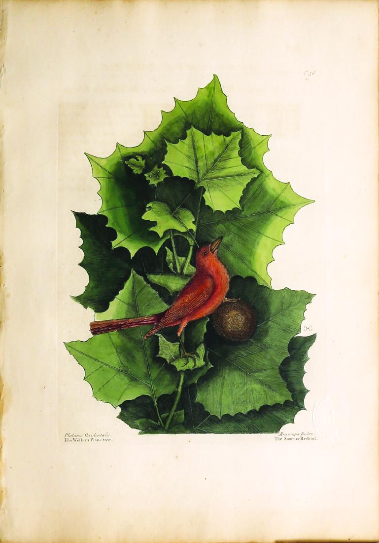 Catesby Bird Engraving, Summer Red Bird