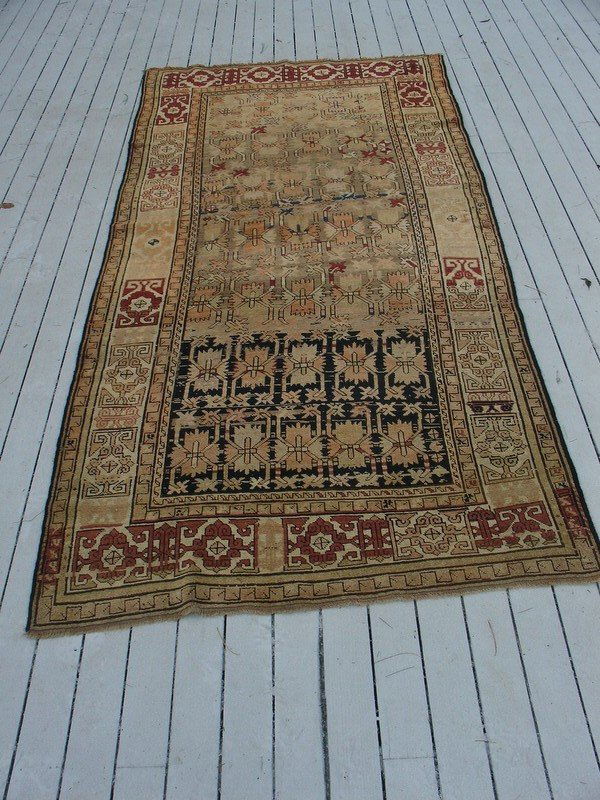 Sold6'9" X 3'5" Antique Caucasian Kazak Wool Rug6'9" X 3'5" Antique Caucasian Kazak Wool Rug, circa 1900s, frayed ends, threadbare, moth trails, stains, please see photos for any specific condition concerns.See Sold Price