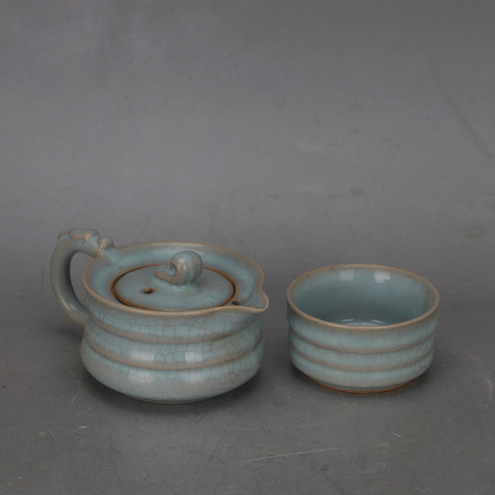 Celadon-glazed dragon handle jug and cup set
