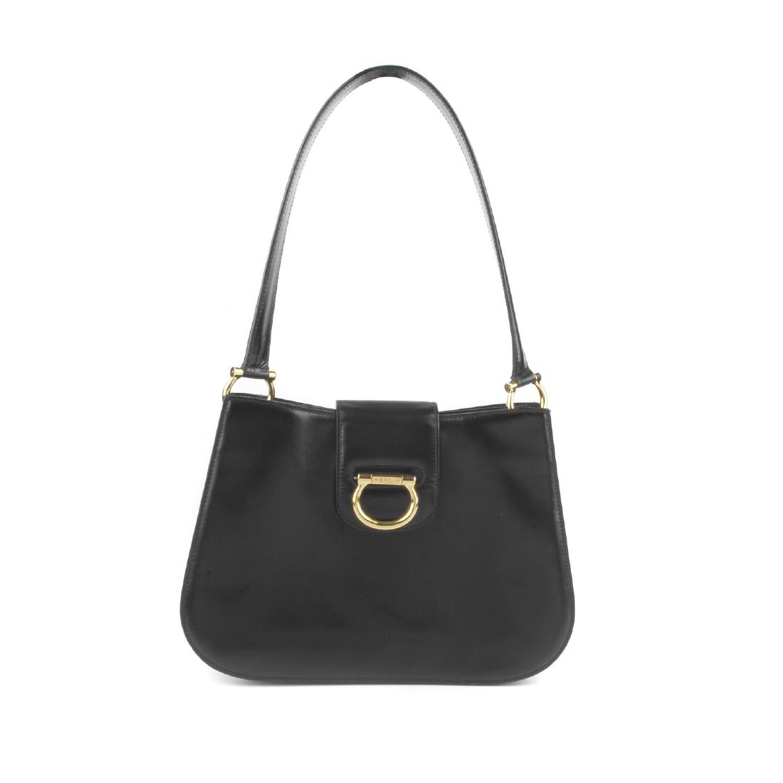 CELINE Vintage Black Calfskin Leather Shoulder Bag GHW