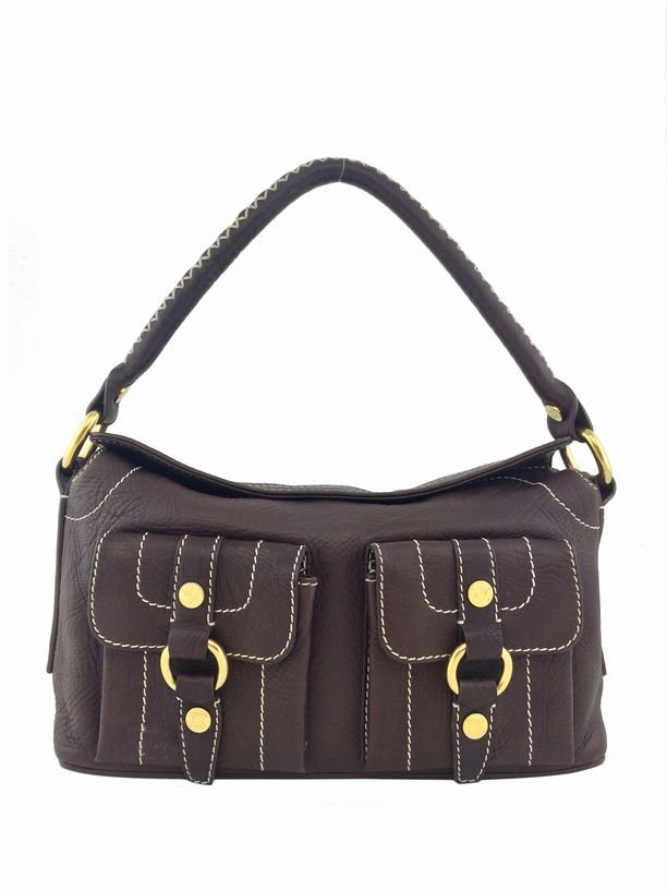 Celine Brown Leather Shoulder Bag with Gold Accents Italy