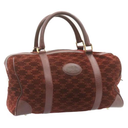 CELINE Macadam Hand Bag Red Suede