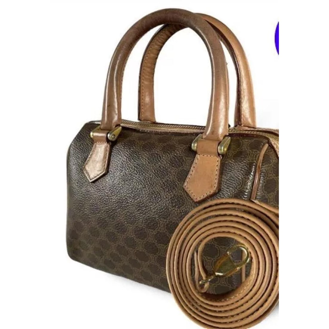 SoldCELINE Macadam Boston Bag Brown PVC Leather Boston BagBrown PVC Boston bag having an all-over Macadam pattern and brown leather trim. Featuring two rolled leather handles, leather side panels, and leather strap accents. Set with gold-tone zipper hardwareSee Sold Price
