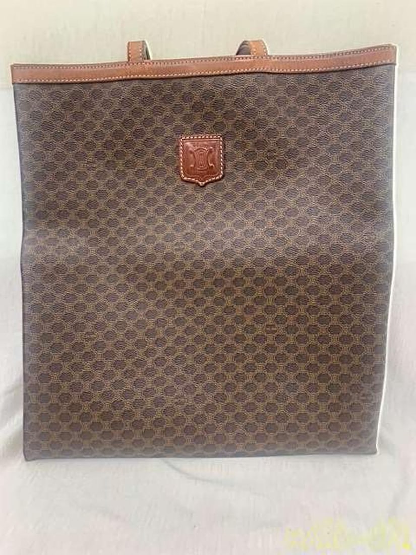 Celine Macadam Brown PVC Leather Tote Bag with Dust Bag