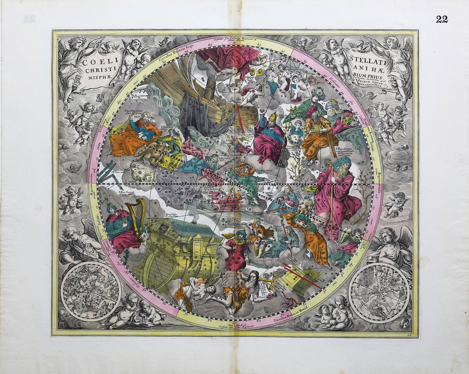 Cellarius - Celestial Chart with the Constellations according to Christian Symbolism [Coeli StellatiThis exceptional, originally hand-colored celestial map engraving is from Andreas Cellarius's Harmonia Macrocosmica Seu Atlas Universalis Et Novus, Totius Universi Creati Cosmographiam Generalem, Et N