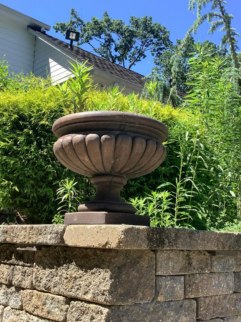 SoldCast Cement Planter On Capital Base 22" H X 18 1/2" Diam.Cast Cement Planter On Capital Base 22" H X 18 1/2" Diam.See Sold Price