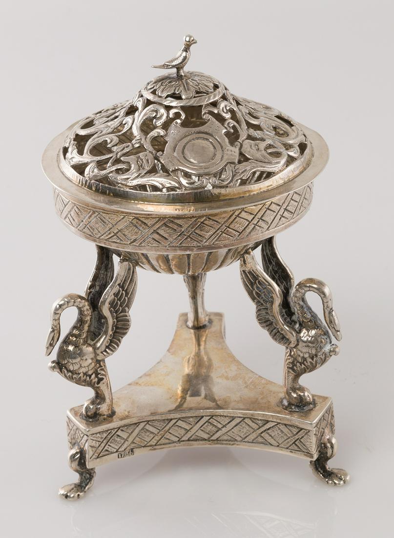 Excellent English George III Old Sheffield Silver Plate Serving Pieces2 days LeftAntique English Brass Oil Lamp – Union Metal Works, c.1910A fancy white bronze handled censer4 days LeftVictorian Desprez Bristol Silver Plate Egg Coddler2 days LeftOttoman Empire Silver Spice Container, 19th C.Mar 19, 2026An Exquisite Silver Double-Ears Gourd Censer6 days LeftAn antique French silver Empire style sugar pot and cover by Rudolphe Beunke, c. 1890Mar 15, 2026An Exquisite Silver Dragon and Crane Tripod CenserMar 11, 202619th Century Indian Hand Made Silver Rose Water Pot2 days LeftSilver Gilt Bronze Metal Incense Burner3 days LeftAn Exquisite Silver Beast-Face Pattern Beast-legs CenserMar 14, 2026Victorian Silver Plate Tobacco Jar, ca. 1850Mar 12, 2026VICTORIAN MANNER COVERED SILVER TEA CADDY W HANDLES2 days LeftOrnate Silverplate Candle Holder2 days LeftAn Exquisite Silver Dragon and Phoenix Pattern Double-Ears CenserMar 14, 2026An Exquisite Silver Dragon-Ears Beast-legs CenserMar 21, 2026